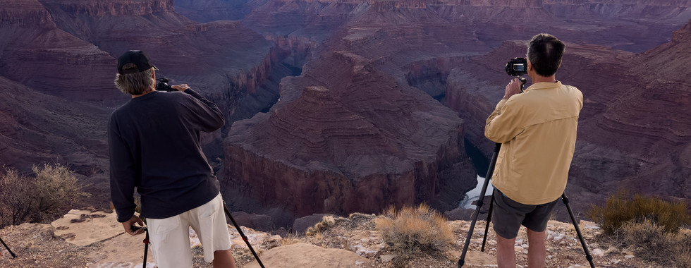 The morning chill didnt last long as we packed up our rigs and gear for the long drive out to civilization, coffee, brunch and to our next location. Guided by our Navajo guide we traveled accross a vast plataue to a seldom visited Overlook of the Grand Canyon. Known to the aboriginals as Tatahatso. Arguably even more stunning than the previous location. Far more remote and truly special. It was our first of the truly sacred locations. When I say we camped just feet from the edge. I mean it! That evenings sky was clear, the afterglow intense. The earths shadow created the most beautuful gradient in the horizon. We shot well into the night that evening, capturing stars over the canyon and rose just in time for the alpenglow to kiss the distant, snow capped ridges. This location was west facing so the milky way appeared behind us over an endless savannah. Most of the group took the chance to sleep in until morning blue hour knowing theyd have another chance at our next location. The clouds started to roll in just as the sun was rising which made for a great morning.