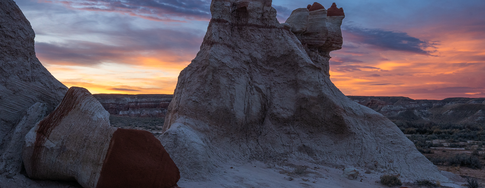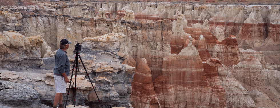 On our third morning we really got to enjoy a slow pace. No hurry to pack up as we only had a short drive to our next and final workshop location. We sat and soaked in the suns rays around the fire and just relaxed. I made us all pancakes, bacon and sausage and somehow those camp breakfasts just taste so much better than any restaurant sometimes. Our final location took us into the Hopi lands where we met up with our Hopi guide Bertram of Ancient Pathways Tours and made our way into Blue Canyon. A very different and incredible experience to being perched high up on a canyon looking down. We really got a chance to be immersed in the landscape and used all of the focal lengths available to capture this wild place and its formations. We even stumbled upon ancient pottery scattered and eroding out of the clay it was laid in centuries ago. Its amazing when you can find evedence of the ancient past and people who once lived there. it gives you a whole different perspective on things and suddenly youre more aware, treading even more carefully and even more attune to your surroundings. The evening provided what felt like never ending golden light until the sun finally set. The following mornings light was colorful! A slow burn, a subtle burn but a wonderful sendoff for the group which gave way to what felt again like never ending golden morning light. Its not often you get the right conditions for shooting well after sunrise or before sunset. The soft clouds help diffuse the light creating rich colors but subtle shadows.